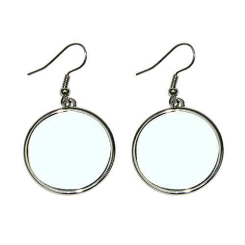 Kruhové náušnice pro sublimační tisk. Tisk se provádí na kovové destičky přiložené k náušnicím, které je třeba vlepit do políček vyfrézovaných v náušnicích. Hotový výrobek je vhodný jako originální dárek apod.