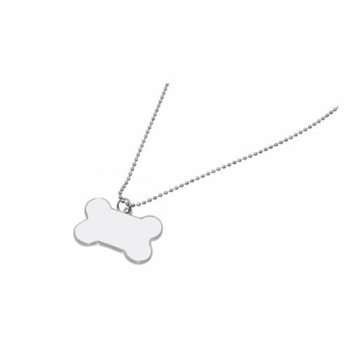 Kovový přívěsek kosti na řetízku s "kuličkou" pro sublimační potisk. Tisk se provádí na kovovou destičku připevněnou k přívěsku, která by měla být vlepena do vyfrézovaného otvoru vyfrézované do přívěsku. Hotový výrobek je vhodný jako originální dárek apod.