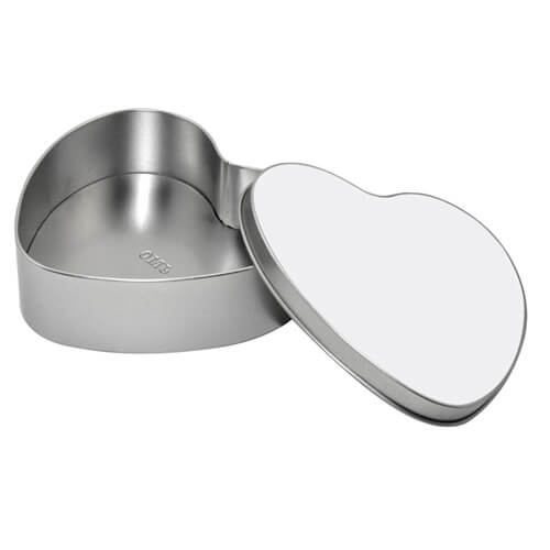 Kovová krabička - srdce pro sublimační tisk. Potisk je zhotoven na přiložené kovové destičce, která se nalepí na víko krabice.