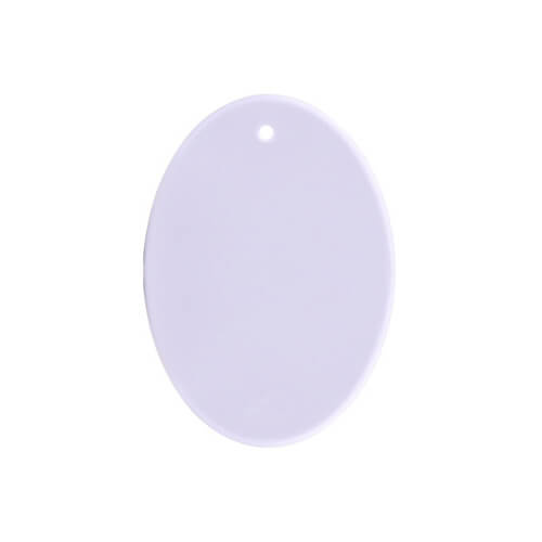 Oválná plastová visačka s otvorem pro sublimační tisk. Lze zakoupit od jednoho kusu.