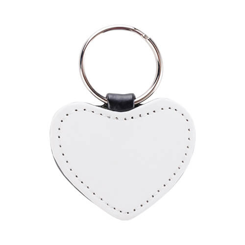 Kožený kroužek na klíče pro sublimační potisk. Bílá strana s potiskem, druhá strana černá. Přívěsek na klíče s kovovým, pochromovaným kroužkem na klíče.