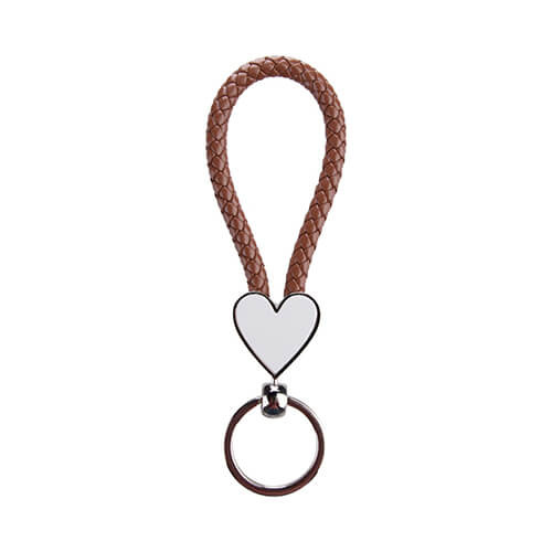 Pletený kroužek na klíče se srdcem pro sublimaci - hnědý