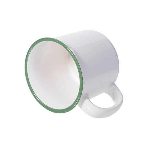 Keramický smaltovaný hrnek 300 ml pro sublimaci - bílý se zeleným okrajem