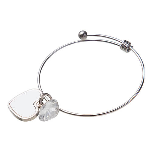 Náramek s kuličkou, křišťálovým srdcem a přívěskem ve tvaru srdce pro sublimační potisk. Hotový výrobek je vhodný jako originální dárek apod.