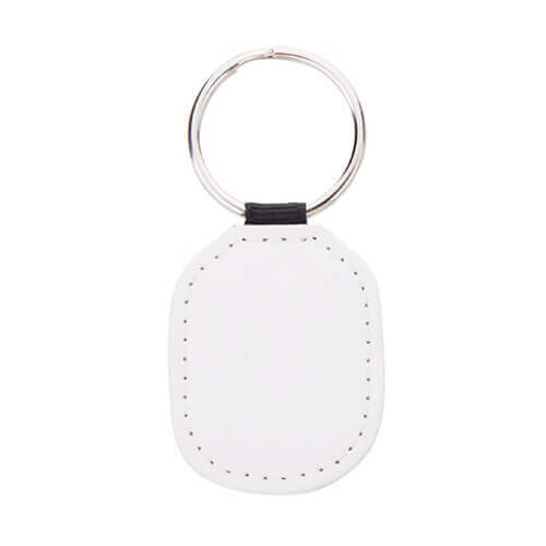 Kožený kroužek na klíče pro sublimační potisk. Tisk je oboustranný. Přívěsek na klíče s kovovým, pochromovaným kroužkem na klíče.
