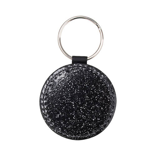 Kožený kroužek na klíče se třpytkami pro sublimaci - černý kruh