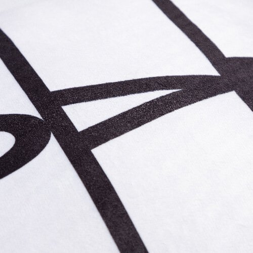 Jedna strana povlaku na polštář s bílými panely na fotografie, druhá strana v černé barvě. Podšívka se zipem.