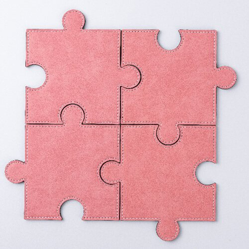 Kožená podložka pod hrnek ve tvaru puzzle pro sublimaci - růžová